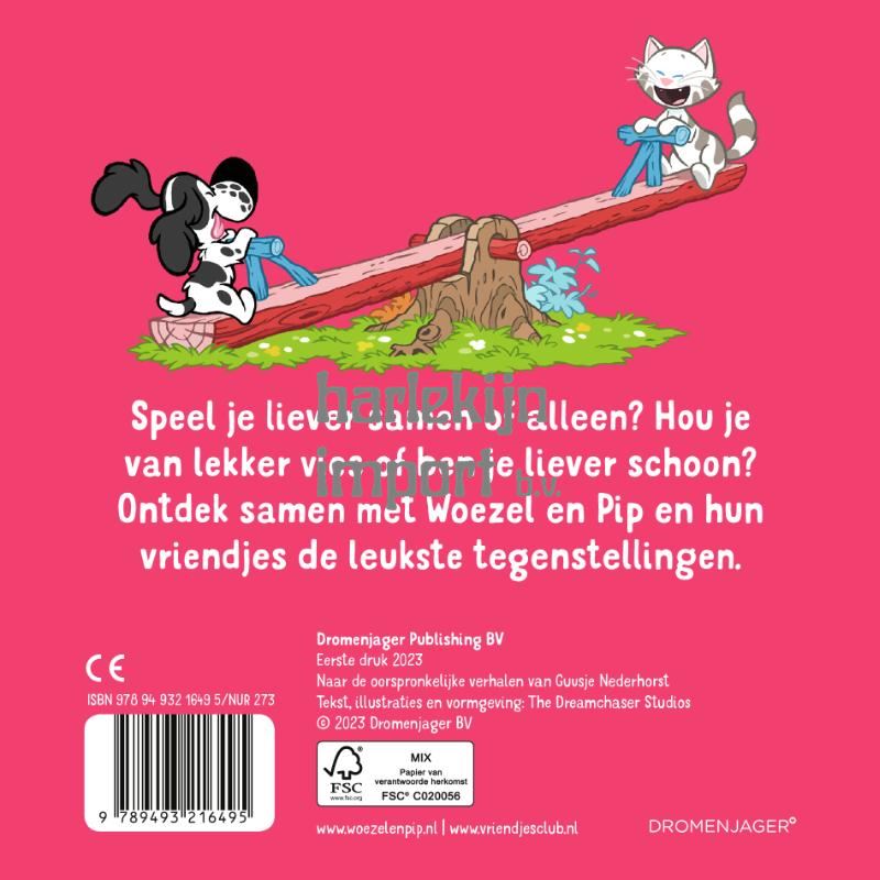 Speel je liever samen of alleen? Hou je van lekker vies of ben je liever schoon? Ontdek samen met Woezel en Pip en hun vriendjes de leukste tegenstellingen.
