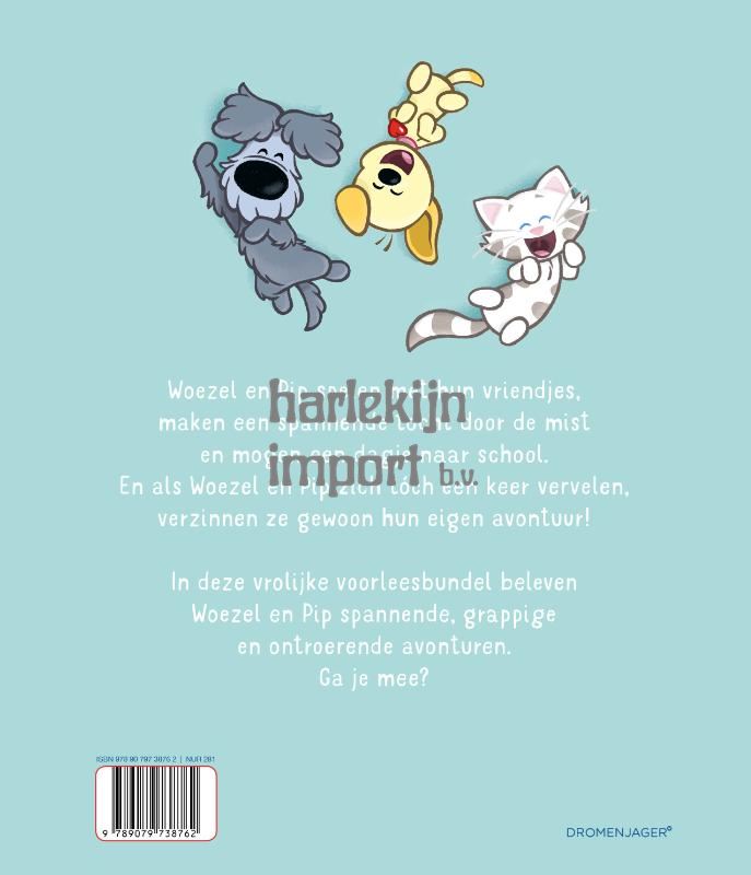 Woezel en Pip spelen met hun vriendjes, maken een spannende tocht door de mist en mogen een dagje naar school. En als Woezel en Pip zich toch een keer vervelen, verzinnen ze gewoon hun eigen avontuur! In deze vrolijke voorleesbundel beleven Woezel en Pip spannende, grappige en ontroerende avonturen. Ga je mee?