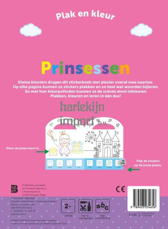 Kleine kleuters van 2 jaar dragen dit stickerboek vol prinsessen met plezier overal mee naartoe. Op elke pagina kunnen ze stickers plakken en zo heel wat woorden bijleren. En met hun kleurpotloden kunnen ze de scènes mooi inkleuren. Plakken, kleuren en leren in één dus!