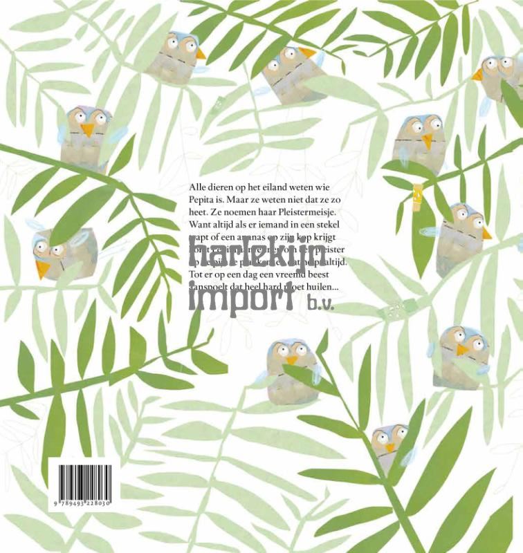 Alle dieren op het eiland weten wie Pepita is. Maar ze weten niet dat ze zo heet. Ze noemen haar Pleistermeisje. Want altijd als er iemand in een stekel trapt of een ananas op zijn kop krijgt komt Pepita aanrennen om een pleister op de pijn te plakken, en dat helpt altijd. Tot er op een dag een vreemd beest aanspoelt dat heel hard moet huilen. Pepita plakt het vreemde beest vol pleisters, maar het huilen houdt niet op. Als pijn heel diep vanbinnen zit helpen pleisters niet, legt Kwal uit. Maar Pepita geeft niet op. Er moet iets zijn wat wel helpt tegen de pijn van het beest, maar wat?