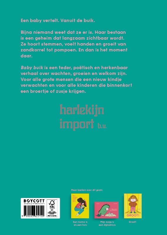 Vanuit de buik vertelt de baby over alles wat hij meemaakt: het kloppen van zijn hart, de handen die over mama’s buik glijden, de stemmen van buiten. Ondertussen verandert er van alles in huis. Iemand wordt grote broer, iemand wordt weer mama. Met haar heldere kleuren en rijke details laat Aurore Petit zien hoe een nieuw leven ontstaat en hoe de komst van een baby het hele gezin verandert. Na het succes van 'Een mama is als een huis' vertelt Aurore Petit opnieuw een intiem en herkenbaar verhaal over de komst van een tweede kind. Een teder, universeel en sprankelend boek over wachten, verwondering en nieuw begin.