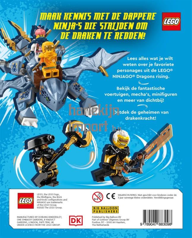 In 'LEGO® Ninjago® - Dragons rising' maak je kennis met de dappere ninja's die strijden om de draken te redden! Ontdek de geheimen van drakenkracht en leer alles over je favoriete personages, voertuigen, mecha's en minifiguren uit de 'LEGO® Ninjago Dragons rising'. Je krijgt bij dit LEGO®-boek een minifiguur van Sora cadeau. 'LEGO® NINJAGO® - Dragons rising' is een leuk kinderboek voor kinderen vanaf 7 jaar. Het LEGO®-avontuur begint zodra je als kind je allereerste LEGO®-steentje vastpakt. Met de vrolijk gekleurde bouwstenen van LEGO® kunnen zowel kinderen als volwassenen een eigen wereld creëren. Of je een eigen stad wilt bouwen, de snelste voertuigen of de mooiste gebouwen, met LEGO® kan het allemaal. Dit creatieve en duurzame speelgoed is niet meer weg te denken!