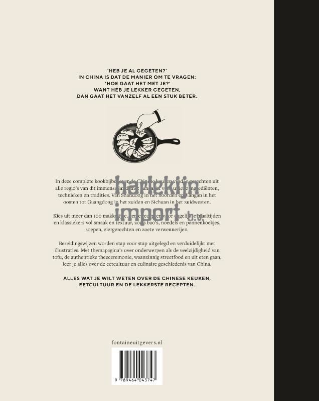 Alles over de Chinese eetcultuur, keukentechnieken én de lekkerste recepten‘Heb je al gegeten?’ is in China de manier om aan iemand te vragen: ‘Hoe gaat het met je?’ Want als je lekker hebt gegeten, gaat het vanzelf al een stuk beter. De Chinese keuken van Handa Cheng is de meest complete kookbijbel over dit immense land. Het bevat recepten uit alle verschillende regio’s en uitleg over unieke ingrediënten, technieken en tradities. Bereidingswijzen worden stap voor stap uitgelegd en verduidelijkt met illustraties. Met themapagina’s over onderwerpen als de veelzijdigheid van tofu, de authentieke theeceremonie en het fantastische streetfood leer je alles over de eetcultuur en culinaire geschiedenis van China. De gerechten zitten vol smaak en textuur, van bao’s en noedels tot rijst- en eiergerechten en zoete verwennerijen. Een inspirerend kook- en bladerboek.• Het meest complete Chinese kookboek• 120 authentieke recepten uit heel China• 35 technieken uitgelegd in woord en beeld• Prachtig uitgevoerd cadeauboek