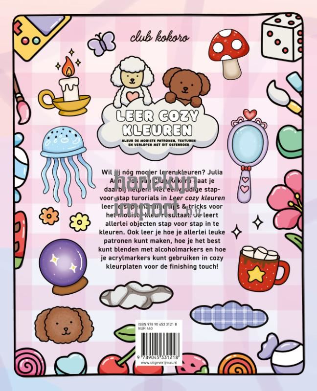 Wil jij nóg mooier leren kleuren? Julia Anna Jes van Club Kokoro gaat je daarbij helpen! Met eenvoudige stap-voor-stap turorials in 'Leer cozy kleuren' leer je superhandige tips & tricks voor het mooiste kleurresultaat. Je leert allerlei objecten stap voor stap in te kleuren. Ook leer je hoe je allerlei leuke patronen kunt maken, hoe je het best kunt blenden met alcoholmarkers en hoe je acrylmarkers kunt gebruiken in cozy kleurplaten voor de finishing touch! Ontdek meer van Club Kokoro! Naast Leer cozy kleuren zijn er nog andere Club Kokoro kleurboeken. Elk boek zit vol gezellige scènes, leuke details en herkenbare items die je misschien ook in dit boek zult tegenkomen. In de andere kleurboeken vind je namelijk de elementen die hier in de tutorials worden uitgelegd. Dat maakt het extra leuk, want je kunt de technieken die je in dit boek leert meteen toepassen. Pak je stiften erbij, kies een pagina en begin met experimenteren. Veel kleurplezier!