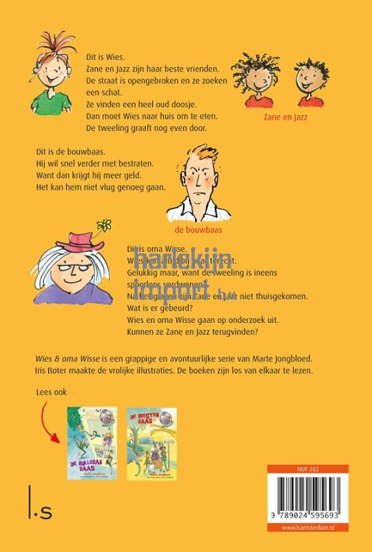 Wies & oma Wisse – De bouwbaas is het derde deel in de supervrolijke serie van Marte Jongbloed en Iris Boter (ill.) Deze grappige serie met full colour illustraties is geschikt voor kinderen vanaf 6 à 7 jaar die nog niet zoveel leeservaring hebben. Eerder verschenen ook De bullebakbaas (deel 1) en De beestenbaas (deel 2).