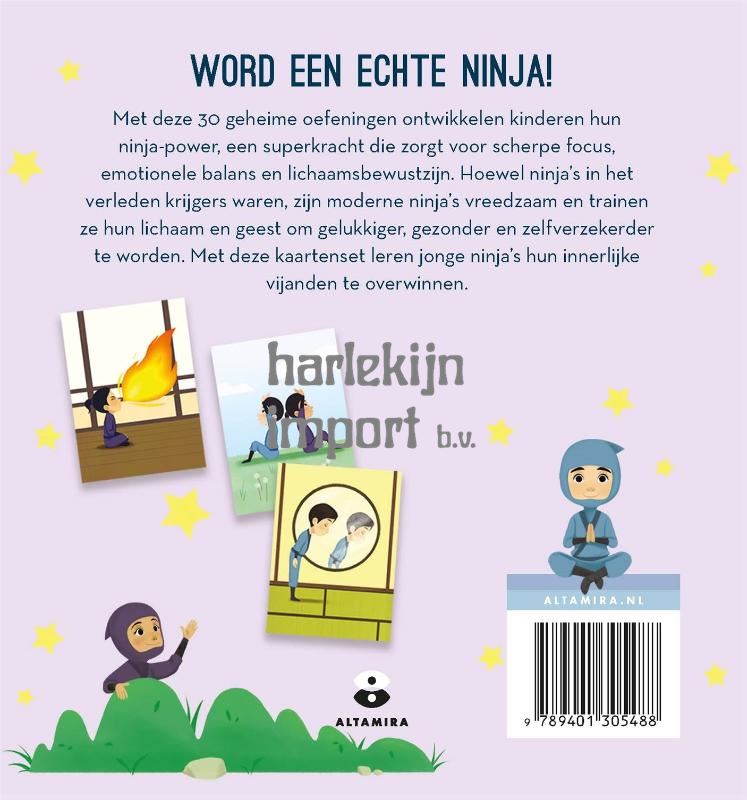 Laat kinderen hun eigen innerlijke ninja ontdekken met ‘Ninja power’. Deze kaartenset bevat 30 oefeningen die zorgen voor een scherpe focus, emotionele balans en lichaamsbewustzijn. Waar ninja’s in het verleden woeste krijgers waren, zijn ze nu vreedzaam en trainen ze hun lichaam en geest om zelfverzekerd, gezond en weerbaar te worden. De oefeningen variëren in moeilijkheid en zijn geschikt voor kinderen vanaf 5 jaar. Oefen het versterken van je geestelijke focus, duik in de fysieke training of ga voor de uitdagende emotionele oefeningen: door de kaarten van ‘Ninja power’ kunnen alle jonge ninja’s hun innerlijke vijanden overwinnen.