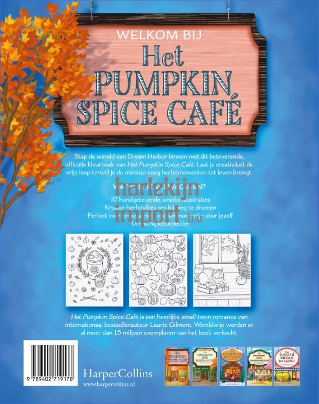 Stap de wereld van Dream Harbor binnen met dit betoverende, officiële kleurboek van Het Pumpkin Spice Café. 37 handgetekende, cosy illustraties om bij weg te dromen! Laat je creativiteit de vrije loop terwijl je de mooiste cosy herfstmomenten tot leven brengt. Wat kun je verwachten? • 37 handgetekende, unieke illustraties• Knusse herfstvibes om bij weg te dromen• Perfect voor ontspanning en een momentje voor jezelf• Urenlang kleurplezier Het Pumpkin Spice Café is een heerlijke small town romance van internationaal bestsellerauteur Laurie Gilmore. Wereldwijd werden er al meer dan 1,5 miljoen exemplaren van het boek verkocht.