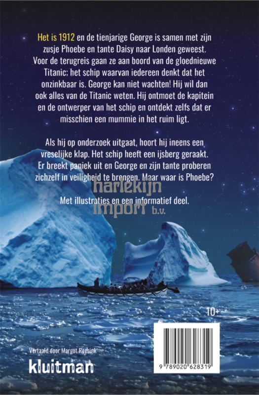 Het is 1912 en de tienjarige George kan zijn geluk niet op. Hij is samen met zijn zusje Phoebe en tante Daisy naar Londen geweest. Als de terugreis is aangebroken, gaan ze aan boord van de gloednieuwe Titanic; het schip waarvan iedereen denkt dat het onzinkbaar is… George is gefascineerd door de Titanic en wil er alles van weten. Hij ontmoet de kapitein en de ontwerper van het schip en hoort zelfs dat er misschien een mummie in het ruim ligt. Als hij op onderzoek uitgaat, hoort hij ineens een vreselijke klap. Het schip heeft een ijsberg geraakt. Er breekt paniek uit en George en zijn tante proberen zichzelf in veiligheid te brengen. Maar waar is Phoebe?