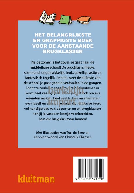 Na de zomer is het zover: je gaat naar de middelbare school! De brugklas is nieuw, spannend, ongemakkelijk, leuk, gezellig, lastig en fantastisch tegelijk. Je bent weer de kleinste van de school, je gaat geheid verdwalen in de gangen, loopt te zeulen met een zware boekentas en er komt heel veel op je af. Maar je gaat ook nieuwe vrienden maken, heel veel lachen en alles leren over jezelf en over de wereld. Met dit leuke boek vol handige tips van docenten en ex-brugklassers kan jij je vast een beetje voorbereiden. Laat die brugklas maar komen!