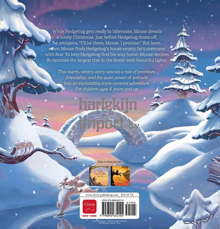 While Hedgehog gets ready to hibernate, Mouse dreads a lonely Christmas. Just before Hedgehog dozes off, he whispers, “I’ll be there, Mouse. I promise.” But later when Mouse finds Hedgehog’s nest empty, he’s overcome with fear. To help Hedgehog find his way home, Mouse decides to decorate the largest tree in the forest with beautiful lights. This warm, wintry tale wraps a tale of promises, friendship, and the power of solitude into an enchanting winter adventure. For children ages 4 years and up.