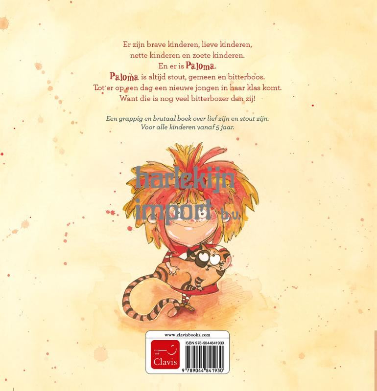 Een grappig en brutaal boek over lief zijn en stout zijn. Voor alle kinderen vanaf 5 jaar. Er zijn brave kinderen, lieve kinderen, nette kinderen en zoete kinderen. En er is Paloma. Paloma is altijd stout, gemeen en bitterboos. Tot er op een dag een nieuwe jongen in haar klas komt. Want die is nog veel bitterbozer dan zij!