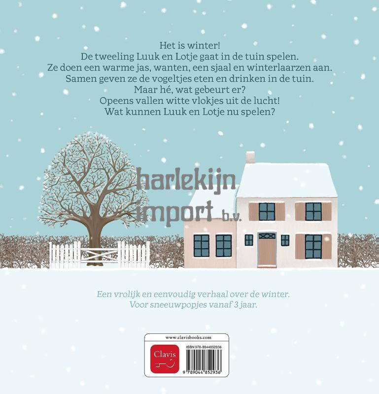 Het is winter! De tweeling Luuk en Lotje gaat in de tuin spelen. Ze doen een warme jas, wanten, een sjaal en winterlaarzen aan. Samen geven ze de vogeltjes eten en drinken in de tuin. Maar hé, wat gebeurt er? Opeens vallen witte vlokjes uit de lucht! Wat kunnen Luuk en Lotje nu spelen? Een vrolijk en eenvoudig verhaal over de winter. Voor sneeuwpopjes vanaf 3 jaar.