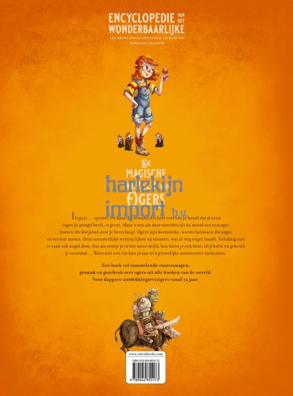 Ik ga je … opeten! De kans dat iemand die heel veel van je houdt dat al eens tegen je gezegd heeft, is groot. Maar o wee als deze woorden uit de mond van een oger komen die kwijlend over je heen buigt. Ogers zijn beresterke, woeste kolossen die angst en terreur zaaien. Deze monsterlijke wezens lijken op mensen, wat ze nog enger maakt. Gelukkig zijn ze vaak ook nogal dom, dus als eentje je in het nauw drijft, hoe klein je ook bent, blijf kalm en gebruik je verstand … Want met een list kun je aan zo’n gruwelijke menseneter ontkomen. Een boek vol rammelende reuzenmagen, gesmak en geschrok over ogers uit alle hoeken van de wereld. Voor dappere ontdekkingsreizigers vanaf 12 jaar.