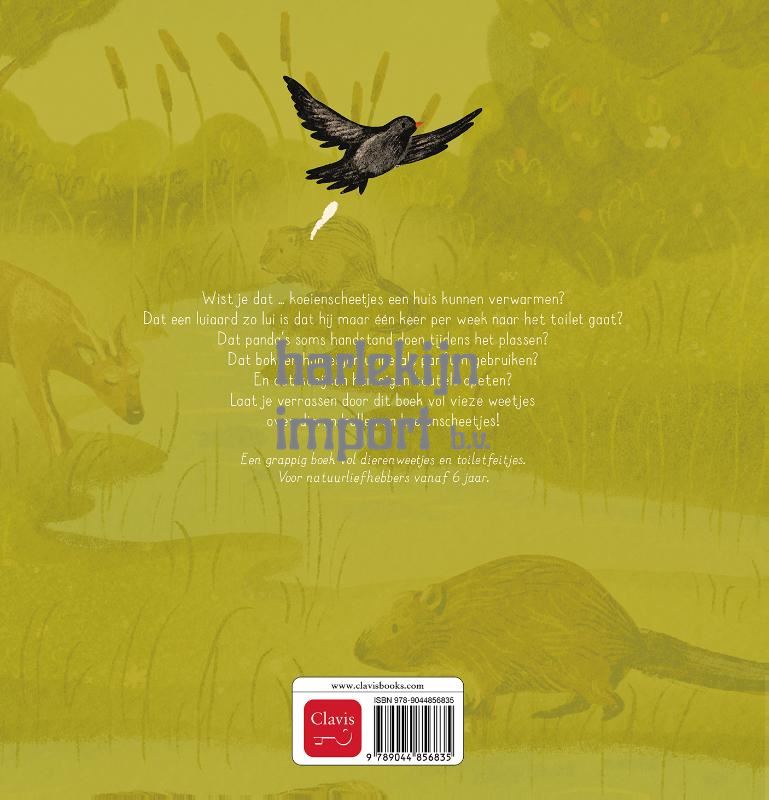 Wist je dat … koeienscheetjes een huis kunnen verwarmen? Dat een luiaard zo lui is dat hij maar één keer per week naar het toilet gaat? Dat panda’s soms handstand doen tijdens het plassen? Dat bokken hun eigen urine als parfum gebruiken? En dat konijnen hun eigen keutels opeten? Laat je verrassen door dit boek vol vieze weetjes over dierendrollen en koeienscheetjes! Een grappig boek vol dierenweetjes en toiletfeitjes. Voor natuurliefhebbers vanaf 5 jaar.