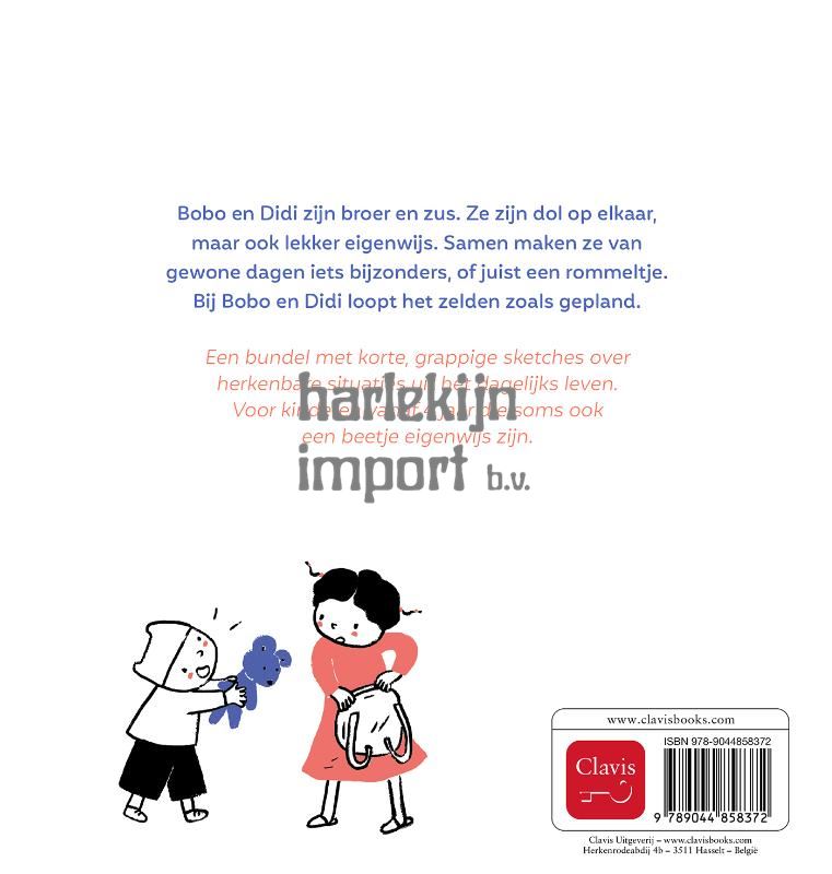 Bobo en Didi zijn broer en zus. Ze zijn dol op elkaar, maar ook lekker eigenwijs. Samen maken ze van gewone dagen iets bijzonders, of juist een rommeltje. Bij Bobo en Didi loopt het zelden zoals gepland. Een bundel met korte, grappige sketches over herkenbare situaties uit het dagelijks leven. Voor kinderen vanaf 4 jaar die soms ook een beetje eigenwijs zijn.