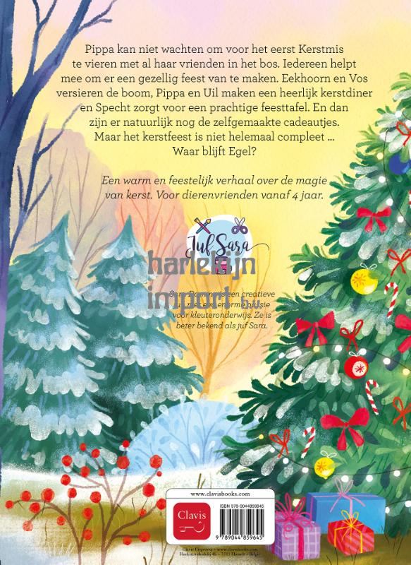 Pippa kan niet wachten om voor het eerst Kerstmis te vieren met al haar vrienden in het bos. Iedereen helpt mee om er een gezellig feest van te maken. Eekhoorn en Vos versieren de boom, Pippa en Uil maken een heerlijk kerstdiner en Specht zorgt voor een prachtige feesttafel. En dan zijn er natuurlijk nog de zelfgemaakte cadeautjes. Maar het kerstfeest is niet helemaal compleet … Waar blijft Egel? Een warm en feestelijk verhaal over de magie van kerst. Voor dierenvrienden vanaf 4 jaar.