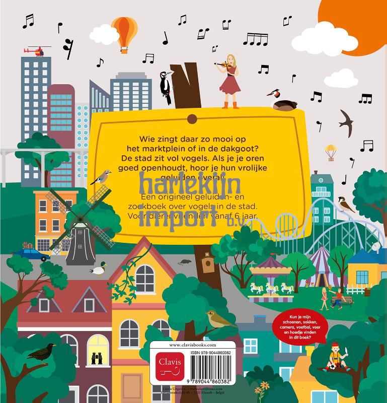 Wie zingt daar zo mooi op het marktplein of in de dakgoot? De stad zit vol vogels. Als je je oren goed openhoudt, hoor je hun vrolijke geluiden overal! Een origineel geluiden- en zoekboek over vogels in de stad. Voor dierenvrienden vanaf 6 jaar.