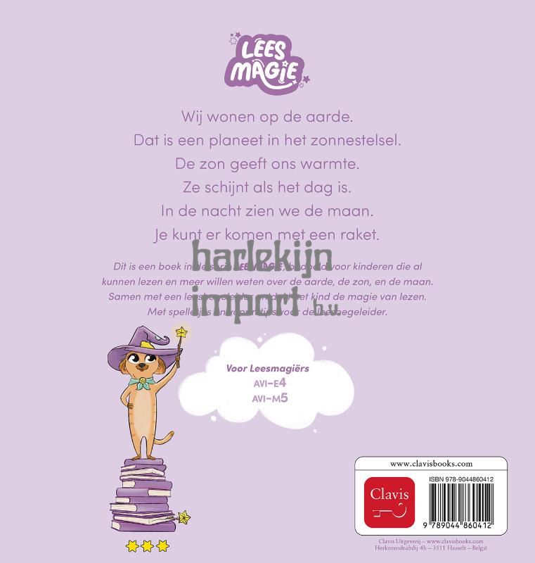 Wij wonen op de aarde. Dat is een planeet in het zonnestelsel. De zon geeft ons warmte. Ze schijnt als het dag is. In de nacht zien we de maan. Je kunt er komen met een raket. Dit is een informatief boek in de serie LEESMAGIE, bedoeld voor kinderen die al kunnen lezen en meer willen weten over de aarde, de zon, en de maan. Samen met een leesbegeleider ontdekt het kind de magie van lezen. Met spelletjes en voorin tips voor de leesbegeleider.