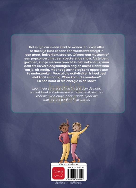 Het is fijn om in een stad te wonen. Er is van alles te doen: je kunt er naar een voetbalwedstrijd in een groot, helverlicht stadion. Of naar een museum of een popconcert met een spetterende show. Als je bent gevallen, kun je meteen terecht in het ziekenhuis, waar dokters en verpleegkundigen dag en nacht klaarstaan om je, als nodig, met hoogtechnologische apparatuur te onderzoeken. Voor al die activiteiten is heel veel elektriciteit nodig. Waar komt die vandaan? En hoe komt al die energie in de stad? Leer meer over energie in je stad aan de hand van dit boek vol informatie en speelse illustraties. Voor nieuwsgierige lezers vanaf 9 jaar.