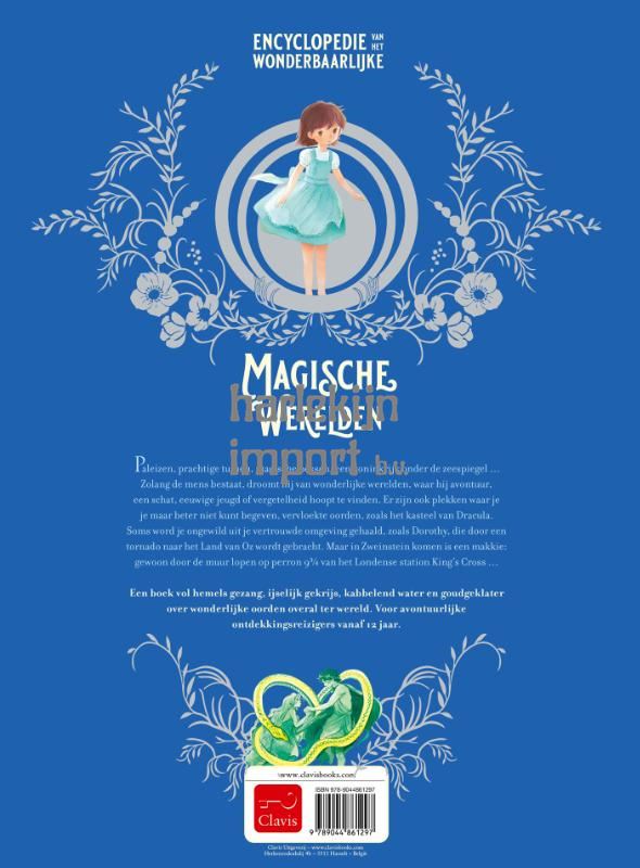 Paleizen, prachtige tuinen, magische bossen, een koninkrijk onder de zeespiegel … Zolang de mens bestaat, droomt hij van wonderlijke werelden, waar hij avontuur, een schat, eeuwige jeugd of vergetelheid hoopt te vinden. Er zijn ook plekken waar je je maar beter niet kunt begeven, vervloekte oorden, zoals het kasteel van Dracula. En naar verdwenen werelden, zoals Atlantis, hoef je niet eens op zoek te gaan. Soms word je ongewild uit je vertrouwde omgeving gehaald, zoals Dorothy, die door een tornado naar het Land van Oz wordt gebracht. Maar in Zweinstein komen is een makkie: gewoon door de muur lopen op perron 9¾ van het Londense station King’s Cross … Een boek vol hemels gezang, ijselijk gekrijs, kabbelend water en goudgeklater over wonderlijke oorden overal ter wereld. Voor avontuurlijke ontdekkingsreizigers vanaf 12 jaar.