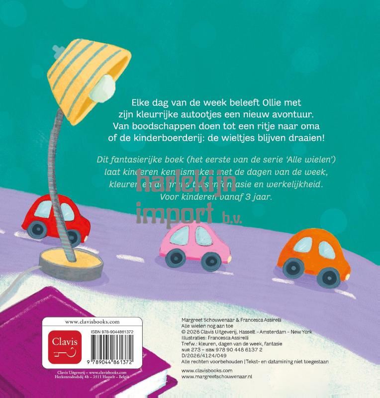 Elke dag van de week beleeft Ollie met zijn kleurrijke autootjes een nieuw avontuur. Van boodschappen doen tot een ritje naar oma of de kinderboerderij: de wieltjes blijven draaien! Een fantasierijk boek dat kinderen laat kennismaken met de dagen van de week, kleuren en de grens tussen fantasie en werkelijkheid. Voor kinderen vanaf 3 jaar.