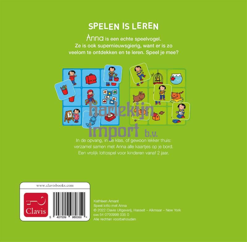 Anna is een echte speelvogel. Ze is ook supernieuwsgierig, want er is zoveel om te ontdekken en te leren. Speel je mee? In de opvang, in de klas, of gewoon lekker thuis: verzamel samen met Anna alle kaartjes op je bord. Een vrolijk lottospel voor kinderen vanaf 2 jaar.