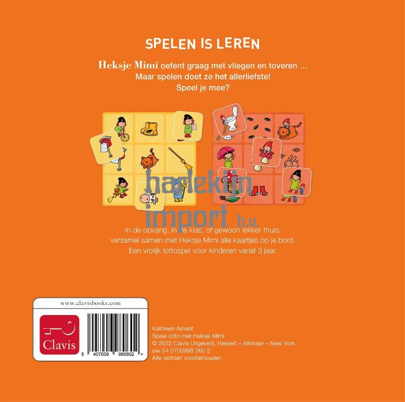Heksje Mimi oefent graag met vliegen en toveren … Maar spelen doet ze het allerliefste! Speel je mee? In de opvang, in de klas, of gewoon lekker thuis: verzamel samen met Heksje Mimi alle kaartjes op je bord. Een vrolijk lottospel voor kinderen vanaf 3 jaar.