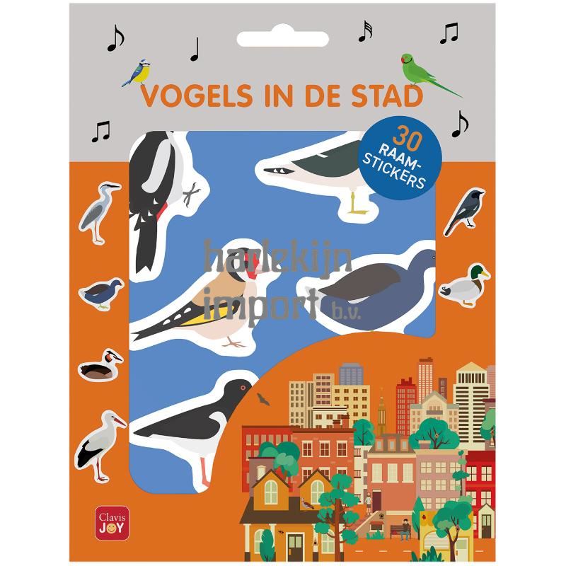 Wie zingt daar zo mooi op het dak en tussen het groen in de straten? De stad zit boordevol vogels. Je hoort ze overal, als je je oren maar goed openhoudt! Vrolijke raamstickers om overal mee te spelen. Thuis, in de auto of in het boek Vogels in de stad!