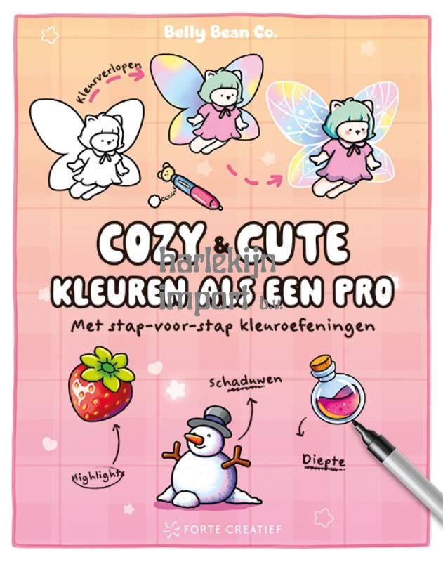 Stap voor stap steeds mooier leren kleuren Met dit cozy kleurboek leer je stap voor stap hoe je je cozy kleurboeken steeds mooier en interessanter kunt inkleuren. Je vindt pagina’s over kleurenleer, handige tutorials en een heleboel pagina’s met eenvoudig te volgen oefeningen. Zo leer je kleuren mengen, schaduwen kleuren, lichtinvallen suggereren, regeneffecten aanbrengen, en nog veel meer. Al doende ga je steeds beter kleuren en maak je je cozy kleurboeken mooier en mooier. Je oefent alle technieken in het boek zelf. Het boek bevat enkelzijdige pagina’s op hetzelfde stevige papier als onze kleurboeken, om doordrukken tegen te gaan. Voor zowel beginners als gevorderden biedt dit boek nieuwe inspiratie, prikkelt het je creativiteit en leert het je vaardigheden die je zeker gaat toepassen in je kleurboeken. Voor alle fans van cozy kleuren die hun kleurtechniek willen verbeteren Boordevol oefeningen die je in het boek zelf kunt doen Dit oefenboek heeft lekker dik papier, je kunt er gewoon met je markers in oefenen Belly Bean Co. is een gepassioneerd duo illustratoren. In al hun ontwerpen stoppen zij vrolijkheid en creativiteit. In hun kleurboeken staat op elke pagina niet zomaar een tekening, maar een verhaal dat erop wacht om te worden ingekleurd.