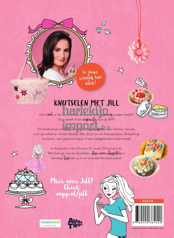 Leer knutselen met Jill!Jill Schirnhofer, bekend van televisie, is een sensatie in kinderboekenland. In Knutselen met Jill staan 25 coole DIY-projecten. Met behulp van de duidelijke stap voor stap foto's, tekeningen en handige tips kunnen alle projecten zelfstandig worden gemaakt en is iedereen in no-time een knutselqueen. Dit boek staat vol Jills knutselideeën voor fashion, beauty, voor op je kamer of op een feestje. Van haarspeldjes, blingbling bonbons, een gepimpt topje tot een zelfgemaakte tulen lamp. Het boek is geschikt voor kinderen vanaf 8 jaar.