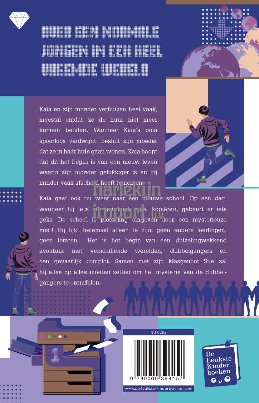 <p><strong>Over een normale jongen in een heel vreemde wereld. </strong></p><p><br /></p><p>Kaia en zijn moeder verhuizen heel vaak, meestal omdat ze de huur niet meer kunnen betalen. Wanneer Kaia’s oma spoorloos verdwijnt, besluit zijn moeder dat ze in háár huis gaan wonen. Kaia hoopt dat dit het begin is van een nieuw leven waarin zijn moeder gelukkiger is en hij minder vaak afscheid hoeft te nemen.</p><p>Kaia gaat ook nu weer naar een nieuwe school. Op een dag, wanneer hij iets uit een boek moet kopiëren, is de school plotseling omringd door een mysterieuze mist, en gek genoeg lijkt hij helemaal alleen te zijn. Geen andere leerlingen, geen leraren... Het is het begin van een duizelingwekkend avontuur met verschillende werelden, dubbelgangers en een complot. Samen met zijn klasgenoot Sue zal hij alles op alles moeten zetten om het mysterie van de dubbelgangers te ontrafelen.</p><p>Voor lezers vanaf 10 jaar.</p><p><strong>Voor fans van</strong><strong><em> Jumanji</em></strong><strong>, </strong><strong><em>Back to the Future</em></strong><strong> en </strong><strong><em>Stranger Things</em></strong></p>