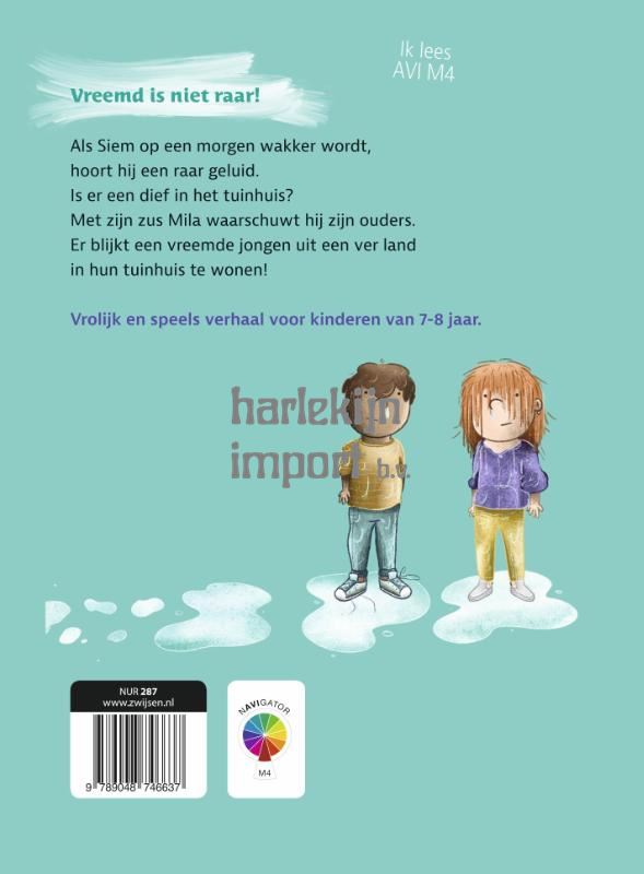 Er wonen vreemde mensen in het tuinhuis van Siem en Mila. Waar komen ze vandaan? En hoe sluit je vriendschap met een jongen die je niet kunt verstaan? Mooi verhaal over vluchtelingen op AVI M4.