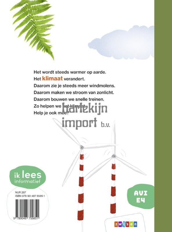 Het wordt steeds warmer op aarde. Het klimaat verandert. Daarom zie je steeds meer windmolens. Daarom maken we stroom van zonlicht. Daarom bouwen we snelle treinen. Zo helpen we het klimaat. Help je ook mee? Hup klimaat! leert kinderen op een leuke manier alles over ons klimaat. Dit interessante boek uit de serie ik lees informatief staat bomvol heldere uitleg, boeiende weetjes, handige tips en schitterende foto’s en illustraties. Van broeikasgassen tot stijgend water, van windmolens tot zonnepanelen, alles komt aan bod. Speciaal geschreven voor kinderen van 6 tot 8 jaar. Dit boek voedt hun nieuwsgierigheid op hun eigen leesniveau. Leuk en leerzaam!