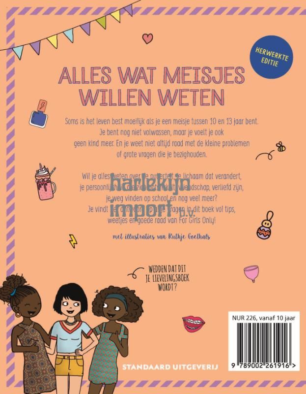 Alles wat meisjes willen weten Soms is het leven best moeilijk als je een meisje tussen 10 en 13 jaar bent. Je bent nog niet volwassen, maar je voelt je ook geen kind meer. En je weet niet altijd raad met de kleine problemen of grote vragen die je bezighouden. Wil je alles weten over de puberteit, je lichaam dat verandert, je persoonlijkheid die zich ontwikkelt, vriendschap, verliefd zijn, je weg vinden op school en nog veel meer? Je vindt het antwoord op al je vragen in dit boek vol tips, weetjes en goede raad van For Girls Only! met illustraties van Ruthje Goethals Wedden dat dit je lievelingsboek wordt?