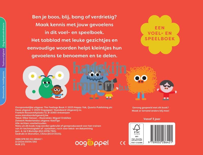 Ben je boos, blij, bang of verdrietig?Maak kennis met jouw gevoelens in dit voel- en speelboek.Het tabblad met leuke gezichtjes en eenvoudige woorden helpt kleintjes hun gevoelens te benoemen en te delen.