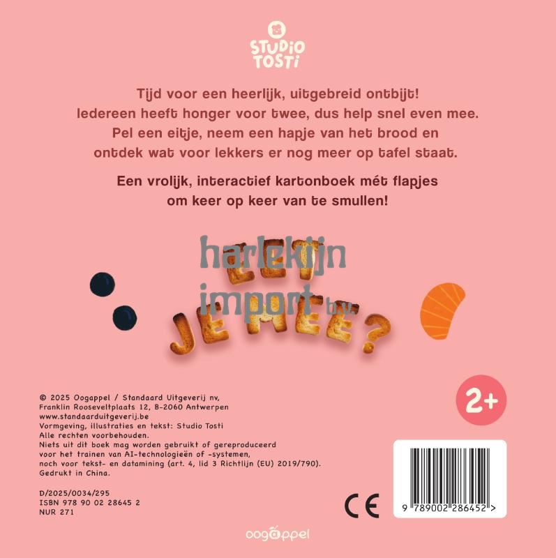 Tijd voor een heerlijk, uitgebreid ontbijt!Iedereen heeft honger voor twee, dus help snel even mee.Pel een eitje, neem een hapje van het brood en ontdek wat voor lekkers er nog meer op tafel staat.Een vrolijk, interactief kartonboek mét flapjes om keer op keer van te smullen!
