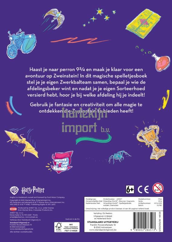 Haast je naar perron 9 3/4 en maak je klaar voor een avontuur op Zweinstein! In dit magische spelletjesboek stel je je eigen Zwerkbalteam samen, bepaal je wie de afdelingsbeker wint en nadat je je eigen Sorteerhoed versierd hebt, hoor je bij welke afdeling hij je indeelt! Gebruik je fantasie en creativiteit om alle magie te ontdekken die Zweinstein te bieden heeft!