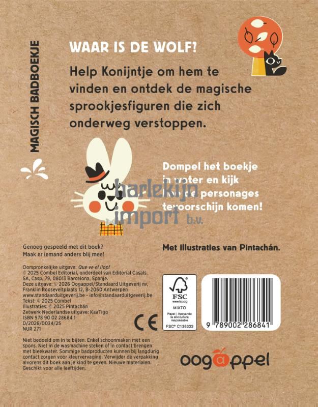 Waar is de wolf? Help Konijntje om hem te vinden en ontdek de magische sprookjesfiguren die zich onderweg verstoppen. Dompel het boekje in water en kijk hoe de personages tevoorschijn komen!