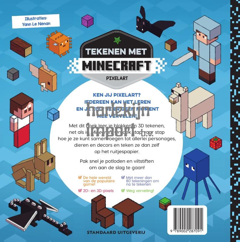 Ken jij pixelart?Iedereen kan het leren en je zult je er geen moment mee vervelen! Met dit boek leer je blokken in 3D tekenen, net als in Minecraft. Ontdek stap voor stap hoe je ze kunt samenvoegen tot allerlei personages, dieren en decors en teken ze dan zelf op het ruitjespapier. Pak snel je potloden en viltstiften om aan de slag te gaan!