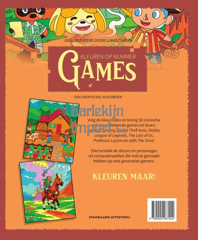 Volg de kleurcodes en breng 50 iconische scènes uit bekende games tot leven: Animal Crossing, Grand Theft Auto, Diablo, League of Legends, The Last of Us, Professor Layton en zelfs The Sims! (Her)ontdek de decors en personages uit computerspellen die indruk gemaakt hebben op vele generaties gamers. Kleuren maar!