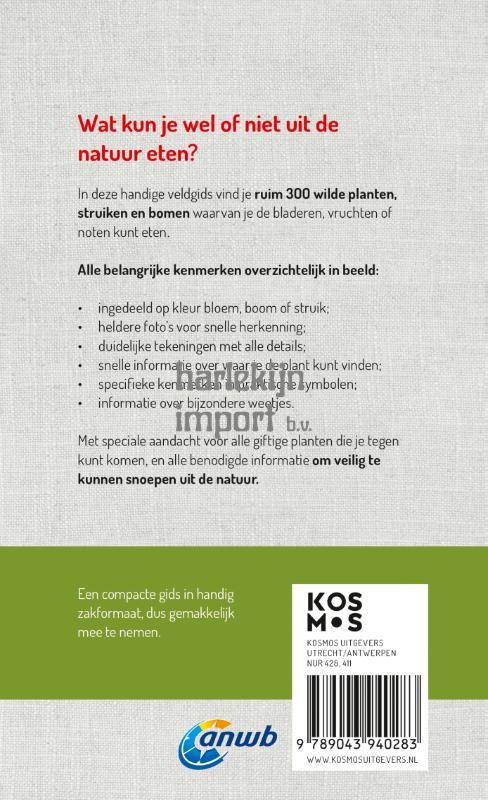‘Welke eetbare wilde plant is dat?’ helpt bij het populaire wildplukken. Met deze ANWB-gids voor eten uit de natuur kun je de natuur intrekken om te zien wat je aan eetbaars kunt plukken. Er worden ruim 300 wilde planten, struiken en bomen beschreven waarvan je de bladeren, vruchten of noten kunt eten. Met speciale aandacht voor alle giftige planten die je tegen kunt komen, en alle benodigde informatie om veilig te kunnen snoepen uit de natuur.
