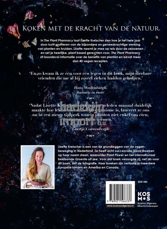 In The Plant Pharmacy laat Lisette Kreischer zien hoe je het hele jaar door kunt profiteren van de bijzondere en geneeskrachtige werking van planten en kruiden. Lisette neemt je mee op reis door de seizoenen en zet je heerlijke, plant based gerechten voor. The Plant Pharmacy zit boordevol informatie over de benefits van planten en bevat meer dan 40 vegan recepten. Met de inzichten die Lisette de afgelopen jaren heeft opgedaan, zowel aan Kruidenrijk, kennis van bijzondere mensen die ze heeft mogen ontmoeten én informatie uit de meest inspirerende boeken, hoopt ze jou te verleiden en verlekkeren met planten. Planten ademen ons, voeden ons en helen ons, ze verdienen een hoofdrol in ons leven. Met dit boek hoopt Lisette de plant haar rechtmatige plek in de wereld terug te geven en de spotlight te richten op de mogelijkheden de plant het overheerlijk hoofdingrediënt in de keuken te laten zijn en een ondersteunend medicijn door de seizoenen. Lisette Kreischer is een van de grondleggers van de vegan-beweging in Nederland. Ze heeft acht succesvolle (kook)boeken op haar naam staan, waaronder Ecofabulous koken in alle seizoenen en Plant Power én het succesvolle en internationaal bekroonde Groente uit zee. Voor dat boek verzorgde zij, net als voor dit boek, zelf de fotografie. Haar boeken zijn vertaald in meerdere Europese landen en Amerika en Canada. 'Lisette Kreischer krijgt het weer voor elkaar: ze maakt het oude nieuw, en serveert de toekomst nu.' - Geertje Couwenbergh, schrijver en columnist 'De verleidelijke recepten, de kleurrijke foto's en bovenal: Lisette Kreischer's duidelijke uitleg van de effecten van kruiden op je eten en je welzijn, maken dat je direct kruiden wilt gaan kweken!' - Roanne van Voorst, schrijver en oprichter fearlesslyfearful.com 'A book so beautiful that it nourishes the soul through its presence alone!' - Sophia Rose, herborist