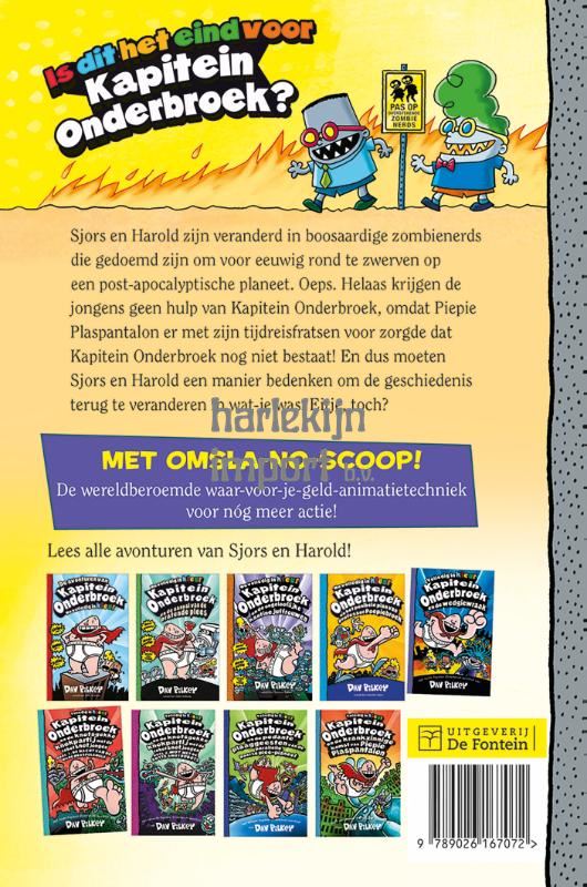 Sjors en Harold zijn veranderd in boosaardige zombienerds die gedoemd zijn om voor eeuwig rond te zwerven op een post-apocalyptische planeet. Oeps. Helaas krijgen de jongens geen hulp van Kapitein Onderbroek, omdat Piepie Plaspantalon er met zijn tijdreisfratsen voor zorgde dat Kapitein Onderbroek nog niet bestaat! En dus moeten Sjors en Harold een manier bedenken om de geschiedenis terug te veranderen in wat-ie was. Eitje, toch?