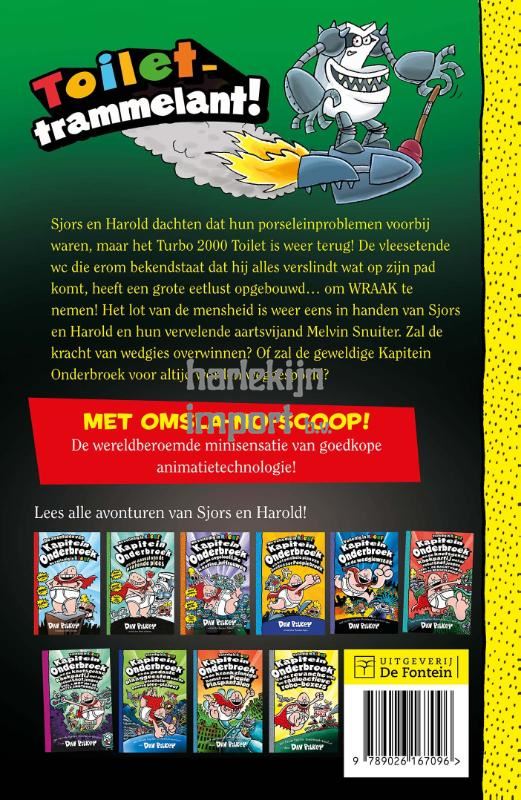 Sjors en Harold dachten dat hun porseleinproblemen voorbij waren, maar het Turbo 2000 Toilet is weer terug! De vleesetende wc die erom bekendstaat dat hij alles verslindt wat op zijn pad komt, heeft een grote eetlust opgebouwdâĤ voor WRAAK! Gelukkig is het lot van de mensheid weer eens in handen van Sjors en Harold en hun vervelende aartsvijand Melvin Snuiter. Zal de kracht van wedgies overwinnen? Of zal de geweldige Kapitein Onderbroek voor altijd worden weggespoeld?