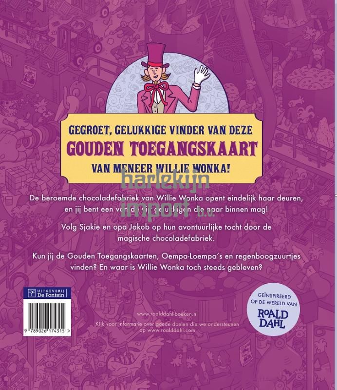 De chocoladefabriek van Willie Wonka opent eindelijk haar deuren en slechts vijf kinderen mogen naar binnen! Volg Sjakie en zijn opa op hun avontuurlijke tocht door de magische chocoladefabriek. Ga op zoek naar de vijf gouden toegangskaarten, regenboogzuurtjes, Oempa-Loempas en nog véél meer! O ja, vergeet Willie Wonka niet! Waar is Wonka? zit chocvol heerlijke vondsten en bekende personages uit Sjakie en de chocoladefabriek. Kan jij ze allemaal vinden? Perfect voor mijn kleinzoon die ook een groot fan is van Waar is Wally? ***** Lezer in Engeland