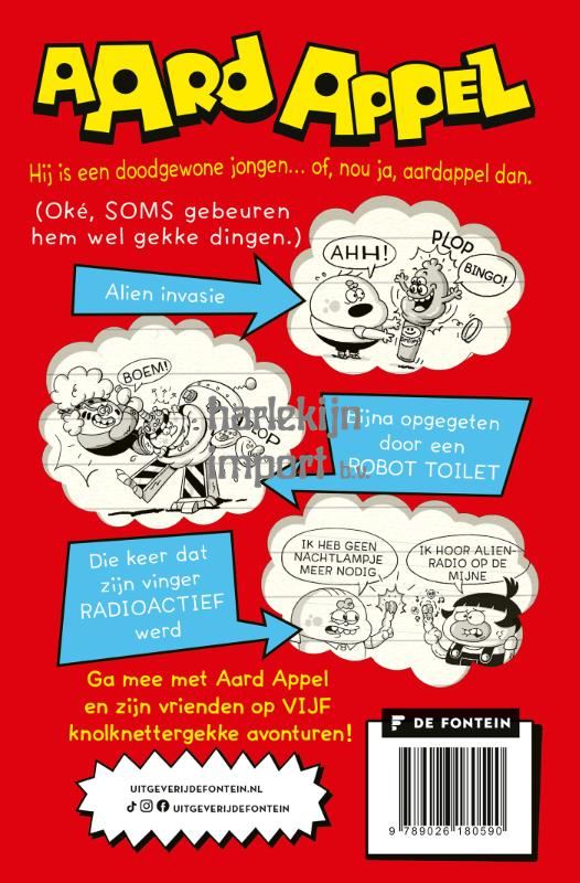 Hij is een doodgewone jongen... of, nou ja, aardappel dan. Oké, SOMS gebeuren hem wel gekke dingen. Zoals een alien invasie of opgegeten worden door een ROBOT TOILET of die ene keer dat zijn vinger RADIOACTIEF werd. Ga mee met Aard Appel en zijn vrienden op vijf knolknettergekke avonturen!