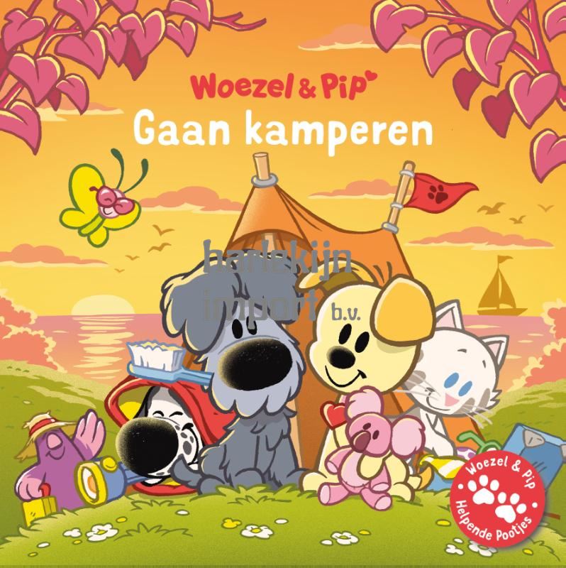 Woezel en Pip gaan met de Wijze Varen mee kamperen. Ze ontdekken alles over het opzetten van een tent, het oppompen van een luchtbed en natuurlijk het echte slapen in de tent. Eerst is dat wel allemaal een beetje gek – het luchtbed kraakt en wiebelt en het tentdoek is wel erg dun. Blijven ze wel droog? En wie maakte dat geluid? Gelukkig zijn ze samen en is het heel knus in de tent. ’s Middags zwemmen de vriendjes in de rivier en ’s avonds roosteren ze lekkere broodjes boven een vuur. Kamperen is een groot avontuur!Voor het eerst naar school, naar de dokter of de tandarts? De eerste zwemles of voor het eerst uit logeren? In de reeks Helpende Pootjes helpen Woezel & Pip kinderen bij deze spannende eerste gebeurtenissen. De leuke, grappige verhaaltjes bespreken alledaagse, soms spannende gebeurtenissen op een laagdrempelige Woezel & Pip-manier en bieden een helpende hand bij spannende momenten.