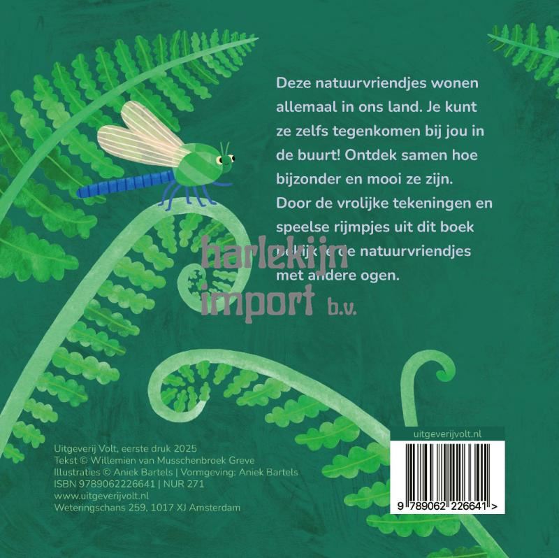 Ken je deze natuurvriendjes al? De wonderlijke verschijnselen wonen allemaal in dit land. Misschien zijn ze wel bij jou in de buurt en kan je ze in het écht tegenkomen. Ontdek samen hoe bijzonder en mooi ze zijn.Door vrolijke tekeningen en speelse rijmpjes bekijk je de natuurvriendjes met andere ogen. Zo worden ze net zo vertrouwd als het abc.