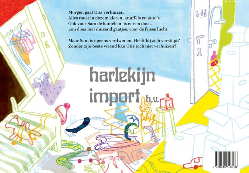Morgen gaat Otis verhuizen. Alles moet in dozen: kleren, knuffels en auto’s. Ook voor zijn beste vriend, de kameleon Sam, is er een doos. Een doos met duizend gaatjes, voor de frisse lucht. Maar Sam is opeens verdwenen. Heeft hij zich verstopt? Otis zoekt de kameleon overal, maar tussen alle verhuisdozen en spullen is hij niet te vinden. Wat nu? Zonder zijn beste vriend kan Otis toch niet verhuizen?