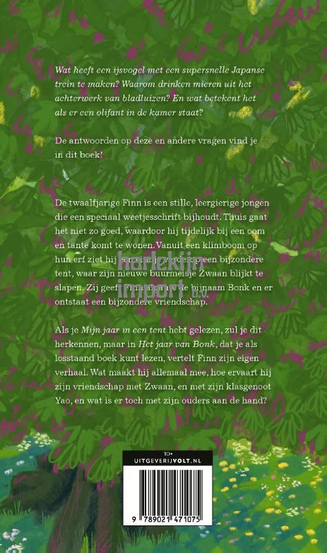 Ontmoet de buurjongen van Zwaan, het meisje dat een jaar in een tent sliepWat heeft een ijsvogel met een supersnelle Japanse trein te maken? Waarom drinken mieren uit het achterwerk van bladluizen? En wat betekent het als er een olifant in de kamer staat?De antwoorden op deze en andere vragen vind je in dit boek!De twaalfjarige Finn is een stille, leergierige jongen die een speciaal weetjesschrift bijhoudt. Thuis gaat het niet zo goed, waardoor hij tijdelijk bij een oom en tante komt te wonen. Vanuit een klimboom op hun erf ziet hij een eindje verderop een bijzondere tent, waar zijn nieuwe buurmeisje Zwaan blijkt te slapen. Zij geeft Finn algauw de bijnaam Bonk en er ontstaat een bijzondere vriendschap. Als je Mijn jaar in een tent hebt gelezen, zul je dit herkennen, maar in Het jaar van Bonk, dat je als losstaand boek kunt lezen, vertelt Finn zijn eigen verhaal. Wat maakt hij allemaal mee, hoe ervaart hij zijn vriendschap met Zwaan, en met zijn klasgenoot Yao, en wat is er toch met zijn ouders aan de hand? ‘De personages leven, het relevante verhaal komt binnen en Fisscher voert je ogenschijnlijk moeiteloos mee naar het filmische slot.’ - Trouw over Mijn jaar in een tent